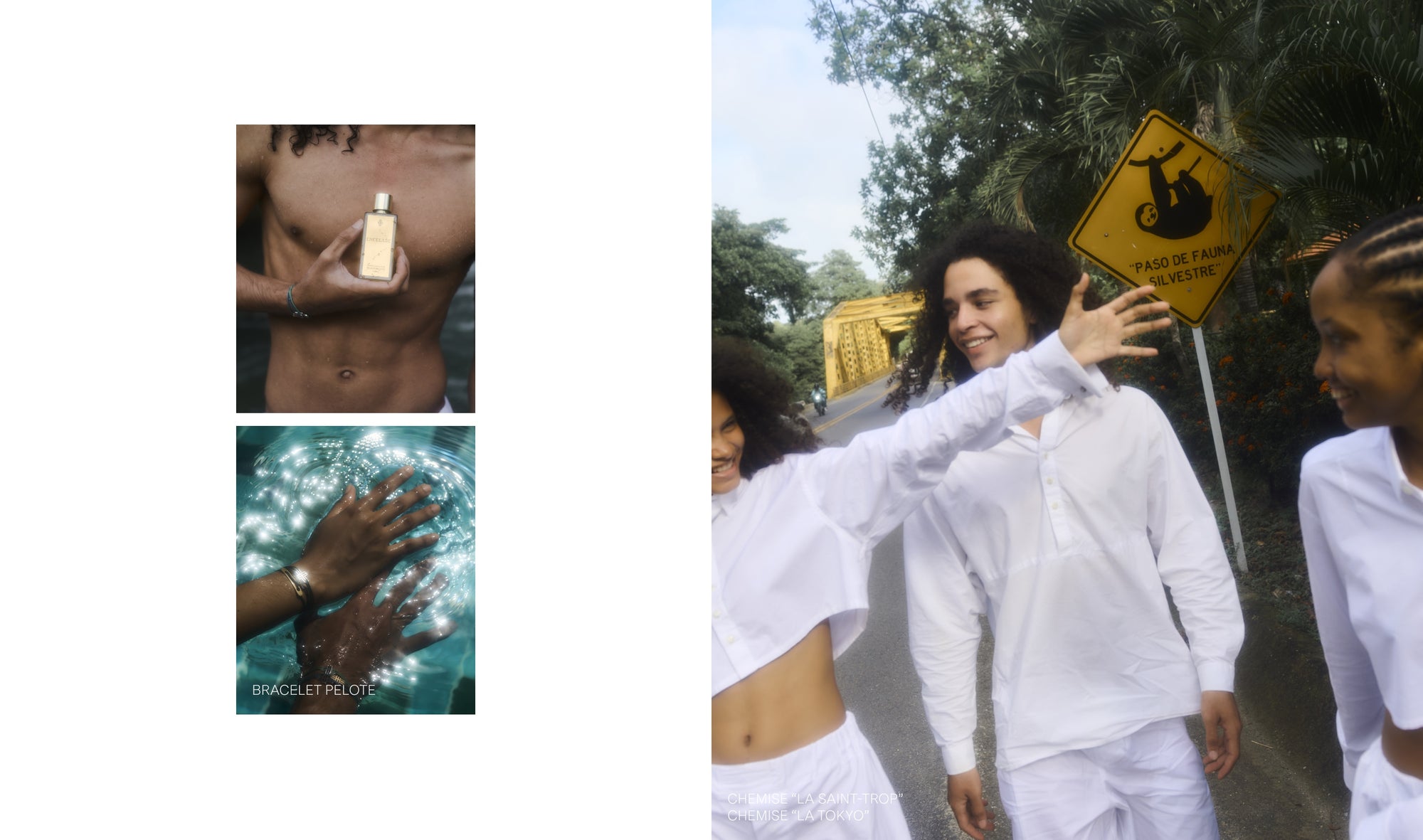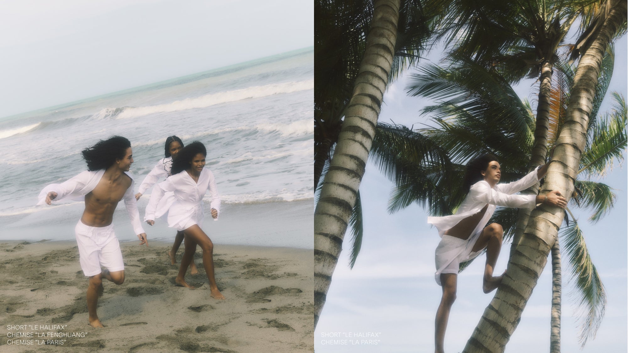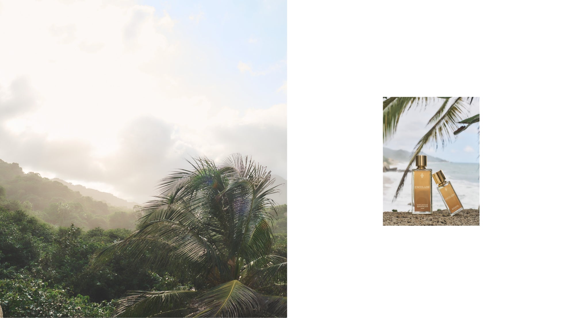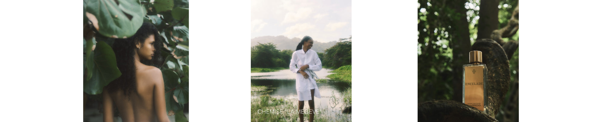 A lush jungle, almost overflowing, a wild cove, humid air clinging to the skin, and three silhouettes. A living, instinctive luxury, with nature as a complice…