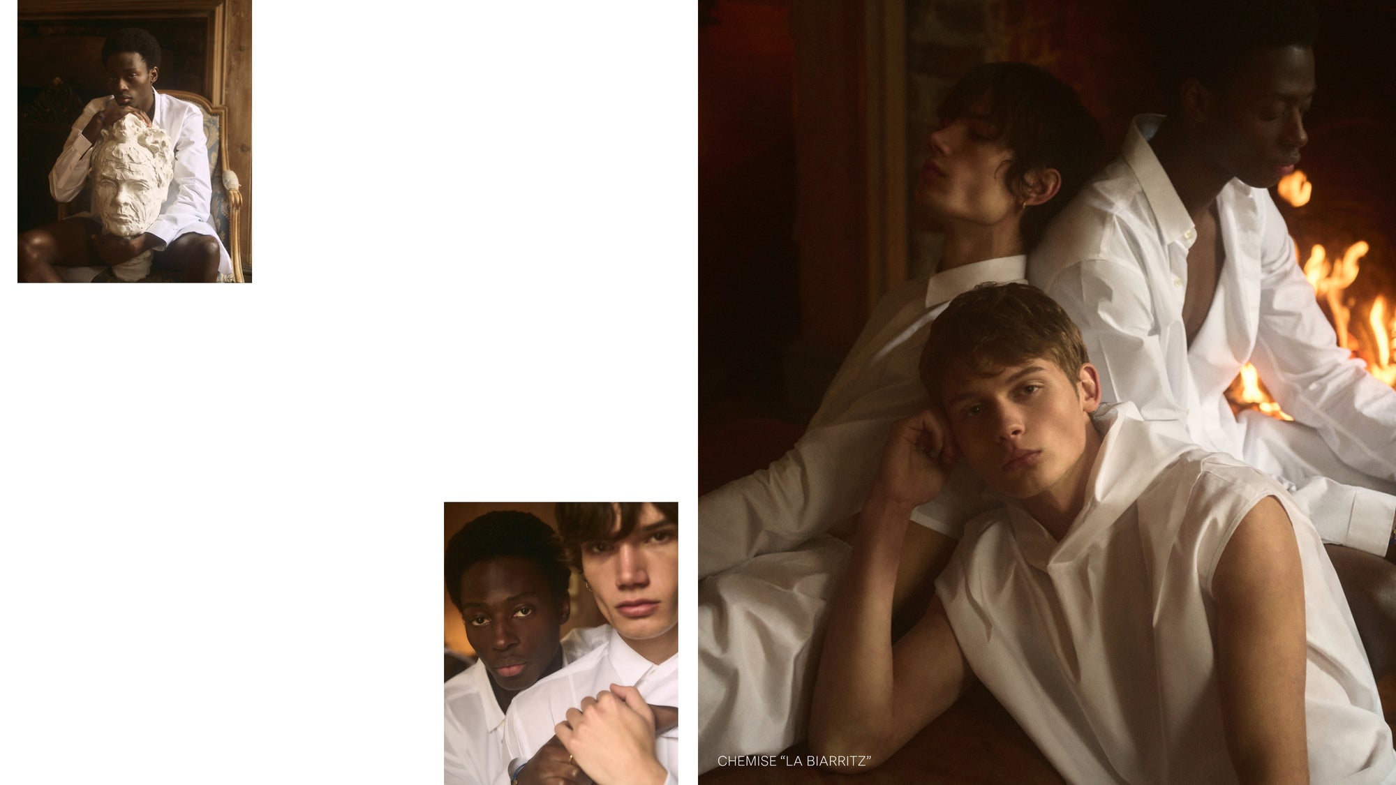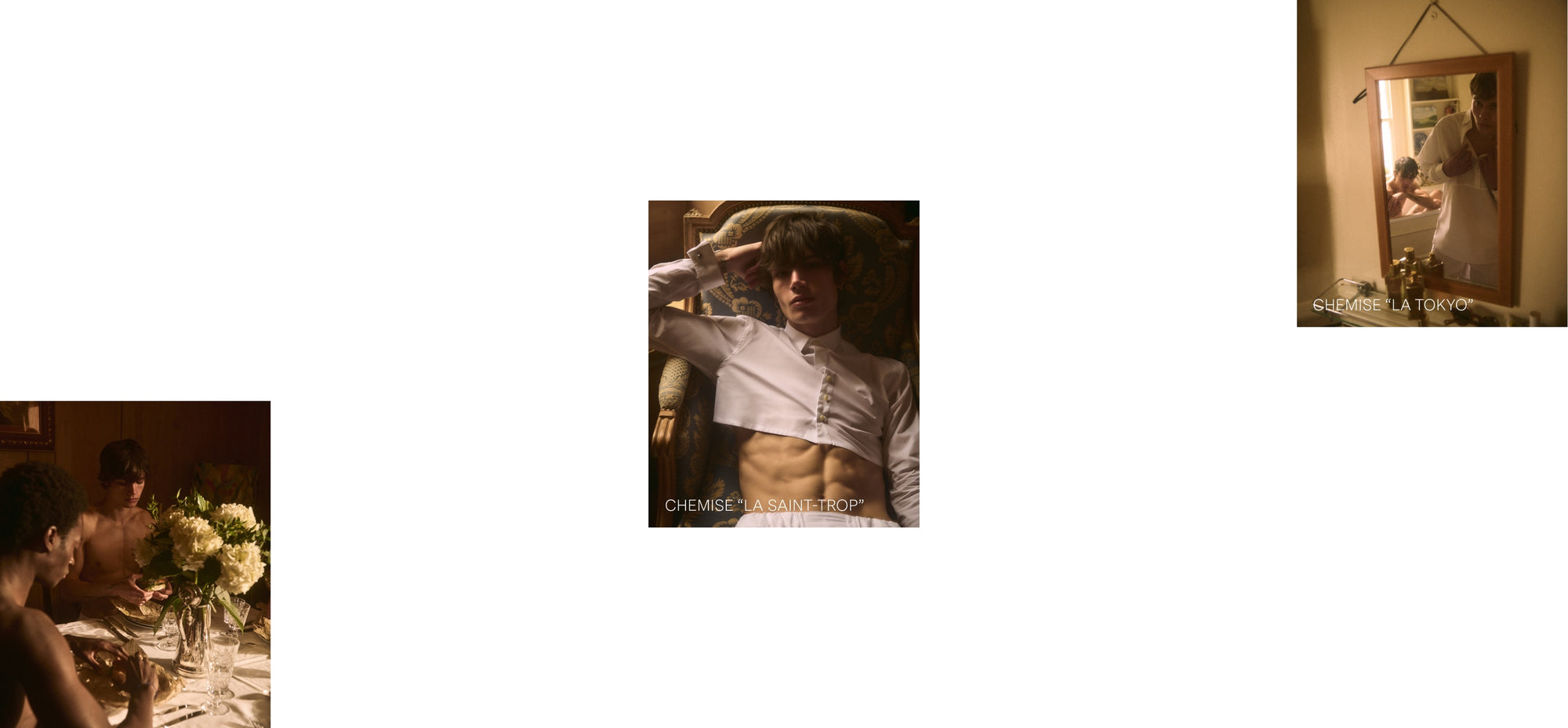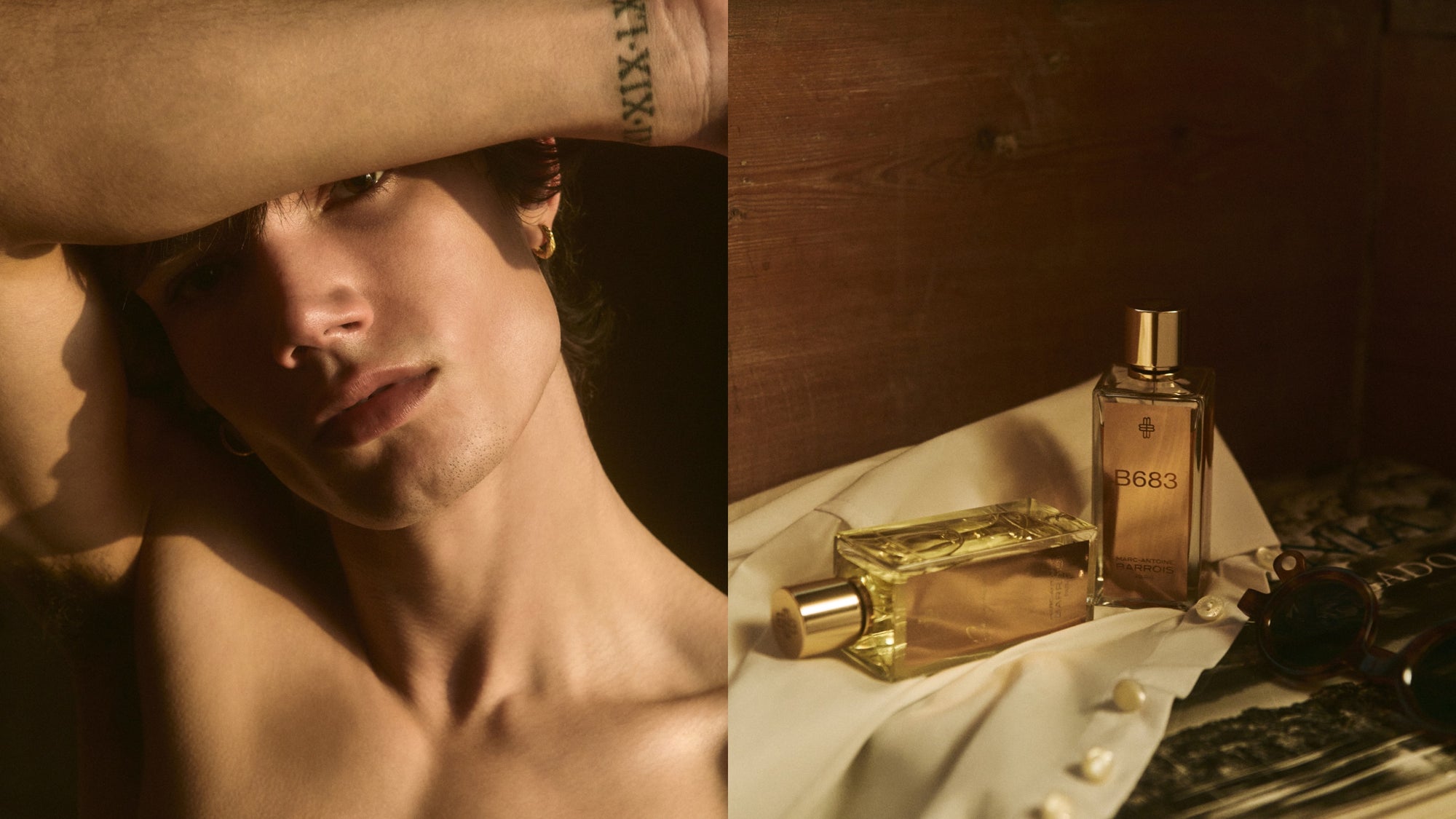 Entre vestiaire masculin intemporel et sensualité assumée, cette série met en lumière les chemises blanches, les T-shirts siglés et les parfums iconiques de la Maison, B683 et Ganymede. Un hommage au style sans effort, à la beauté du détail, et à la liberté des silhouettes.
